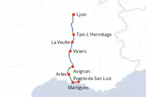 Itinerario : Lyon, Avignon, Arles, Puerto de San Luis, Martigues, Arles, Viviers, La Voulte, Tain-L'Hermitage, Lyon