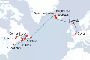 Itinerario : Dover, Lerwick, Reykjavik, Grundarfjordur, Isafjordhur, St Johns, Corner Brook, Quebec, Saguenay, Charlottetown, Sidney, Halifax, Nueva York