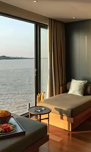 Las suites a bordo de los barcos de Aqua Expeditions, como el Aqua Nera o el Aqua Mekong, están diseñadas para ofrecer una privacidad total sin perder nunca la conexión visual con la naturaleza. Cada suite es una obra maestra del diseño, a menudo decorada con artesanía local de alta gama. La característica principal son las inmensas paredes acristaladas que transforman la habitación en una pantalla de cine viva sobre el mundo exterior. Equipadas con baños lujosos, ropa de cama premium y, en algunos casos, balcones privados, estas suites garantizan un descanso absoluto a lo largo del río, en un lujo discreto y acogedor.