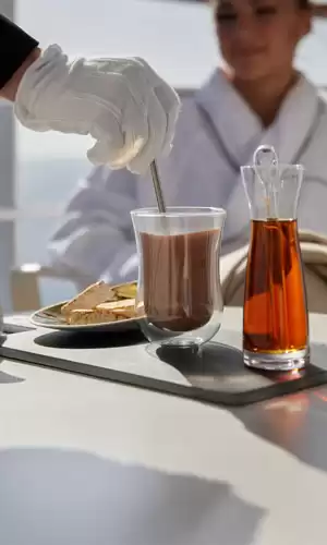 El confort a bordo es irreprochable, al igual que el servicio personalizado con mayordomos. Las zonas públicas son amplias y las suites están bellamente decoradas y todas tienen vistas al océano (algunas con verandas de teca y sobre todo la mejor relación espacio/pasajero entre los cruceros de lujo). En cuanto al bienestar, los lujosos spas de los barcos ofrecen una amplia gama de tratamientos.