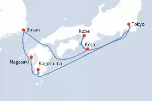 Itinerario : Tokyo, Kagoshima, Nagasaki, Busan, Kochi, Kobe, Tokyo, Kagoshima, Nagasaki, Busan, Kochi, Kobe, Tokyo