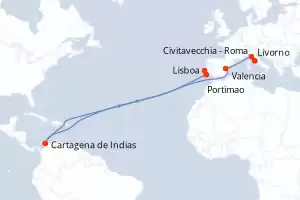Itinerario : Civitavecchia - Roma, Livorno, Valencia, Cartagena de Indias, Portimao, Lisboa