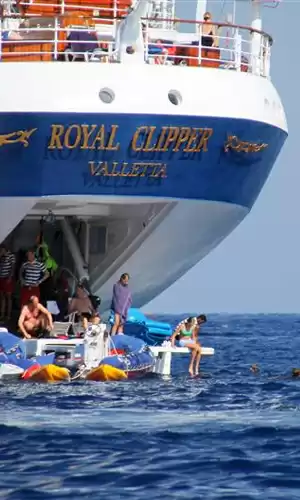 El Royal Clipper es un yate de cinco mástiles y cuarenta y dos velas, puesto en servicio en 2000. Posee el récord del mayor velero de su tipo. Se inspira en el mítico velero alemán Preussen. A bordo tiene capacidad para 227 pasajeros y 106 miembros de la tripulación. Cuenta con tres piscinas, el Piano Bar, el Tropical Bar y el famoso gimnasio Captain Nemo Lounge. El alojamiento a bordo es en elegantes camarotes de 10/13 metros cuadrados o en la Suite del Armador de 40 metros cuadrados.
